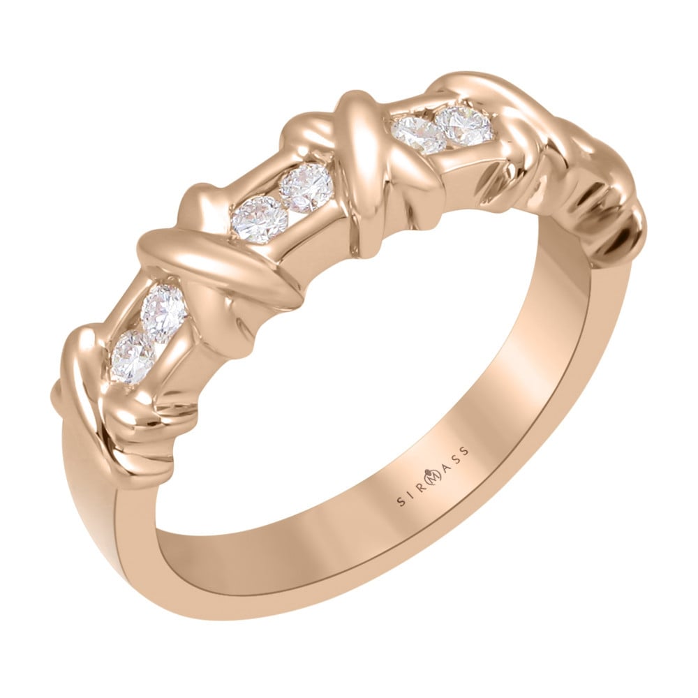خاتم من الذهب الوردي عيار 18 قيراطا مرصعة بالألماس وزن الذهب:5.1 جراما عدد الألماس:8 وزن الألماس:0.27 قيراط نقاء الألماس:SI3-I1 لون الألماس:H-I