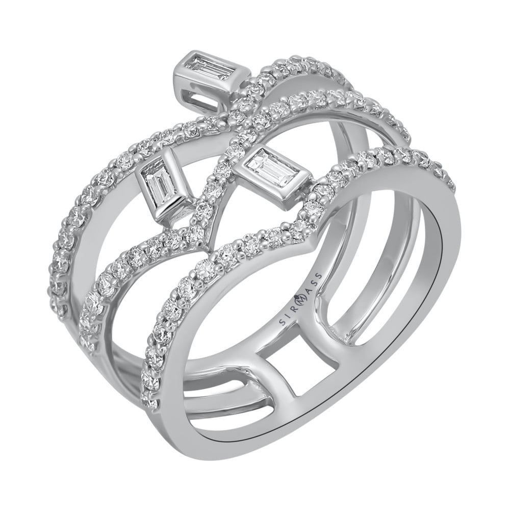 خاتم من الذهب الأبيض عيار 18 قيراطا مرصعة بالألماس وزن الذهب:6.28 جراما عدد الألماس:69 وزن الألماس:0.68 قيراط نقاء الألماس:I1 لون الألماس:H-I