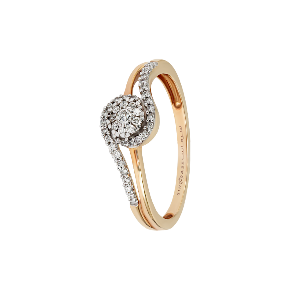 خاتم من الذهب الأصفر عيار 18 قيراطاً مرصعة بالألماس