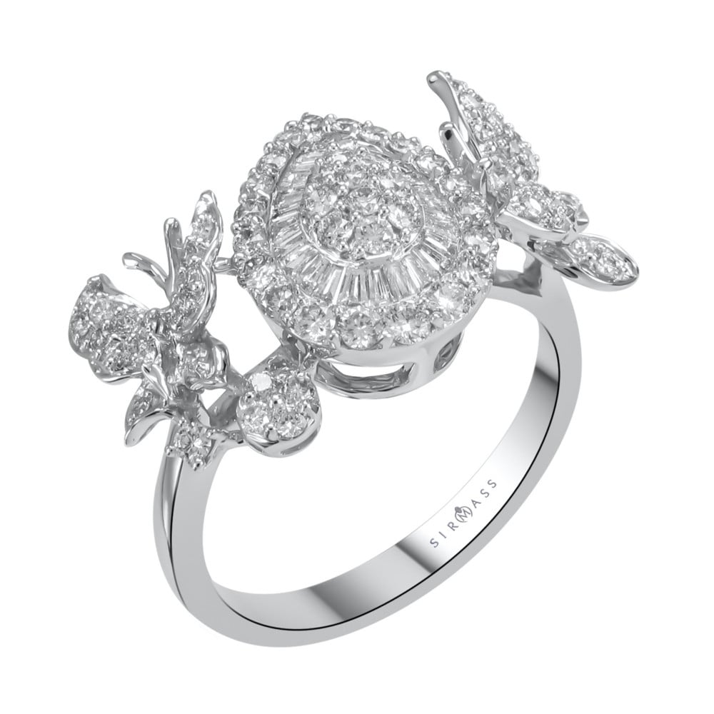 خاتم من الذهب الأبيض عيار 18 قيراطا مرصعة بالألماس وزن الذهب:6.08 جراما عدد الألماس:100 وزن الألماس:0.89 قيراط نقاء الألماس:I1 لون الألماس:H-I