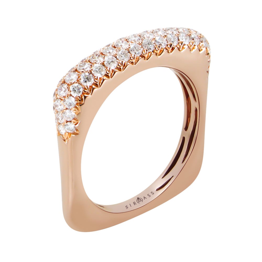 خاتم من الذهب الوردي عيار 18 قيراطا مرصعة بالألماس وزن الذهب:4.94 جراما عدد الألماس:55 وزن الألماس:0.88 قيراط نقاء الألماس:I1 لون الألماس:H-I