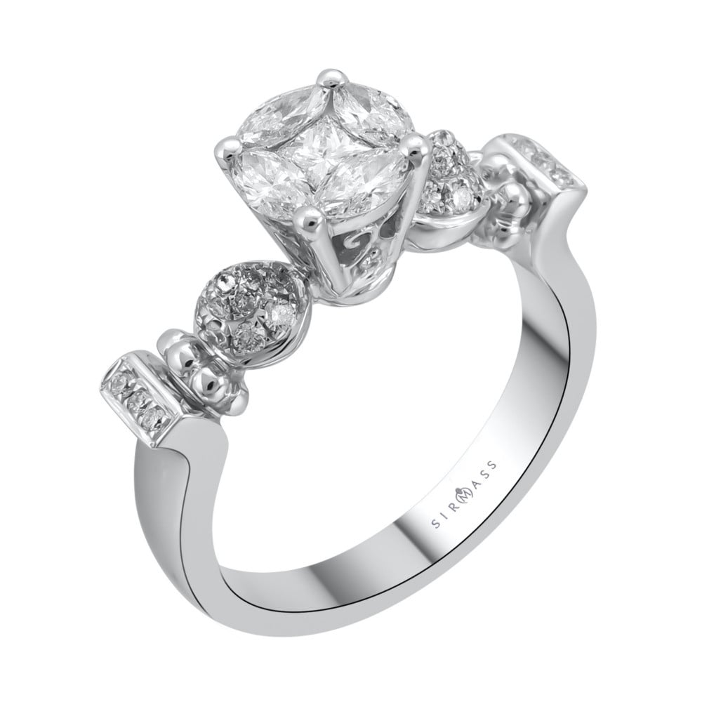 خاتم من الذهب الأبيض عيار 18 قيراطا مرصعة بالألماس وزن الذهب:6.14 جراما عدد الألماس:39 وزن الألماس:0.6 قيراط نقاء الألماس:SI2-I1 لون الألماس:H-I