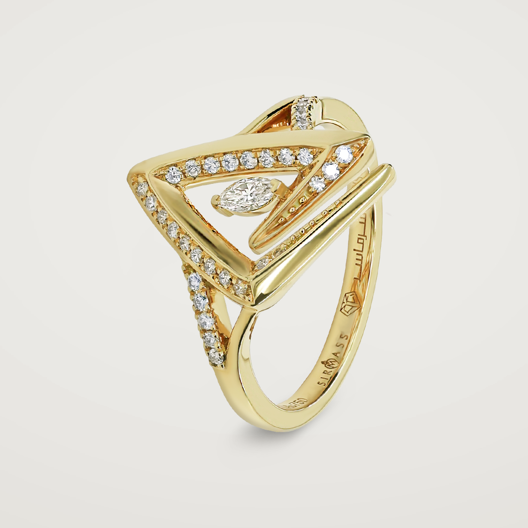 خاتم من الذهب الأصفر عيار 18 قيراطاً مرصعة بالألماس