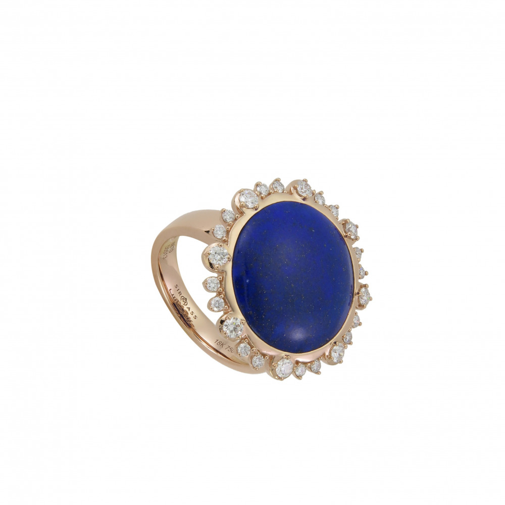 خاتم من الذهب الوردي عيار 18 قيراط مرصع بالالماس و اللازورد
