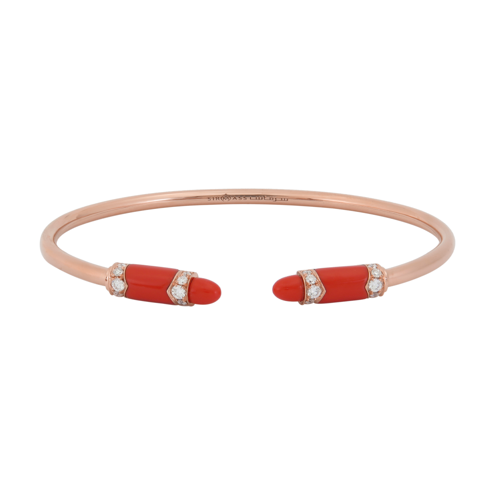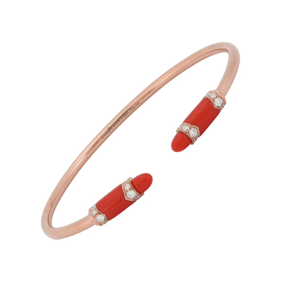 اسوارة من الذهب الوردي عيار 18 قيراطاً مرصعة بالألماس والمرجان