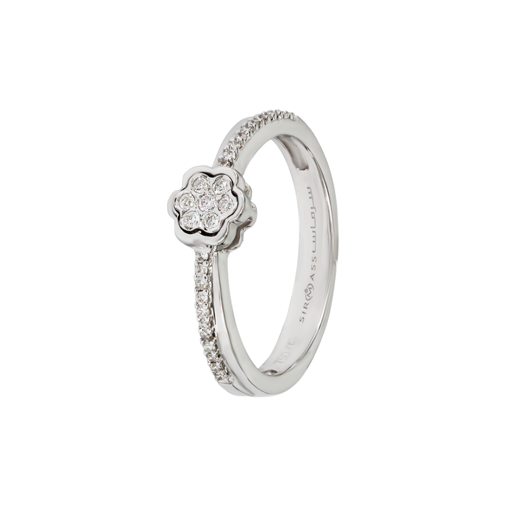خاتم من الذهب الأبيض عيار 18 قيراطاً مرصعة بالألماس
