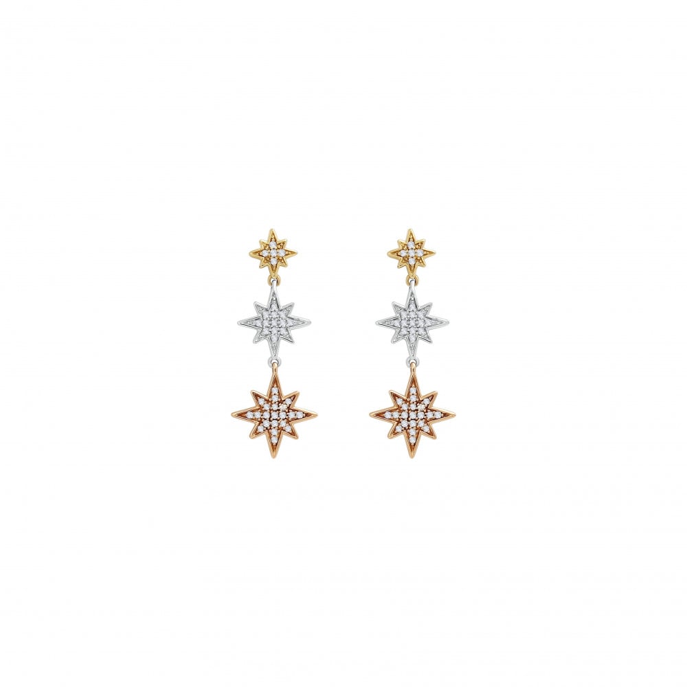 أقراط من الذهب الاصفر والأبيض والوردي عيار 18 قيراطاً مرصعة بالالماس