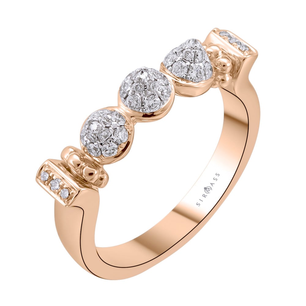 خاتم من الذهب الوردي عيار 18 قيراطا مرصعة بالألماس وزن الذهب:5.32 جراما عدد الألماس:45 وزن الألماس:0.31 قيراط نقاء الألماس:I1 لون الألماس:H-I