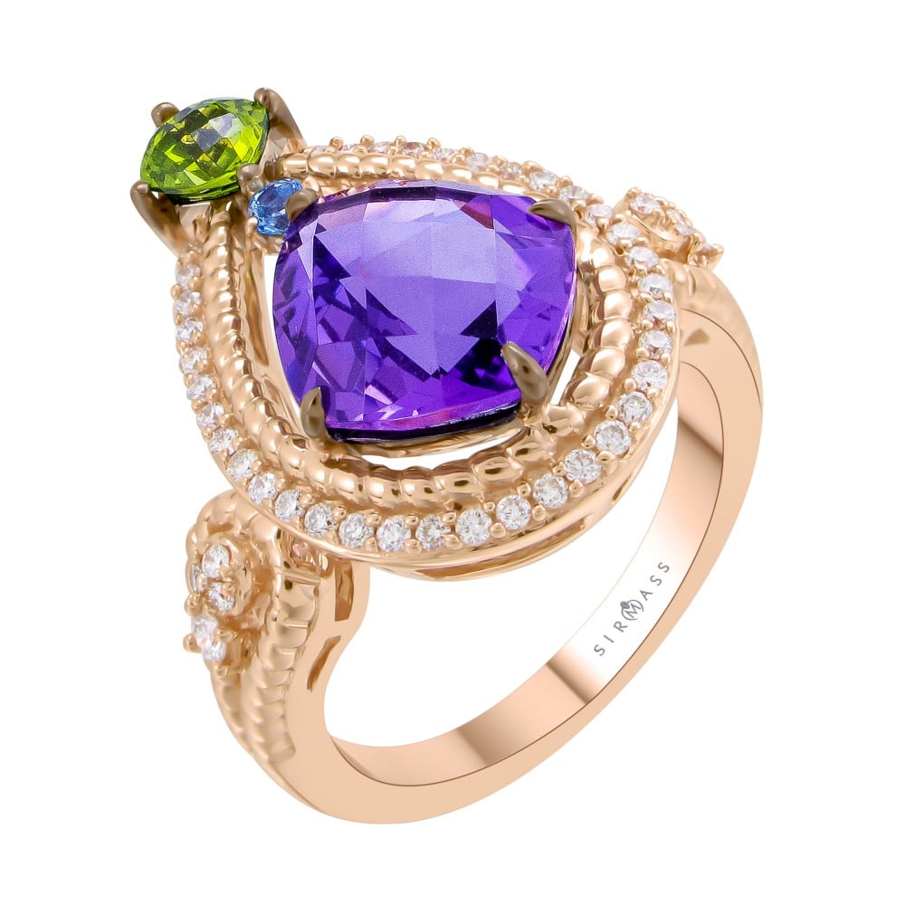 خاتم من الذهب الوردي عيار 18 قيراطا مرصعة بالألماس وزن الذهب:7.73 جراما عدد الألماس:45 وزن الألماس:0.3 قيراط نقاء الألماس:VVS-VS لون الألماس:H-I