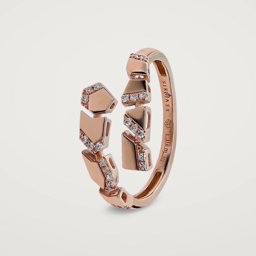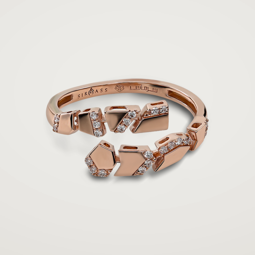 خاتم من الذهب الوردي عيار 18 قيراطاً مرصعة بالألماس