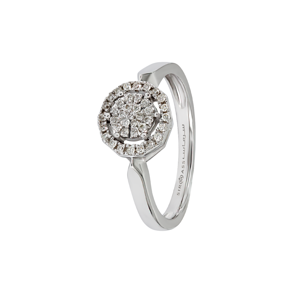 خاتم من الذهب الأبيض عيار 18 قيراطاً مرصعة بالألماس