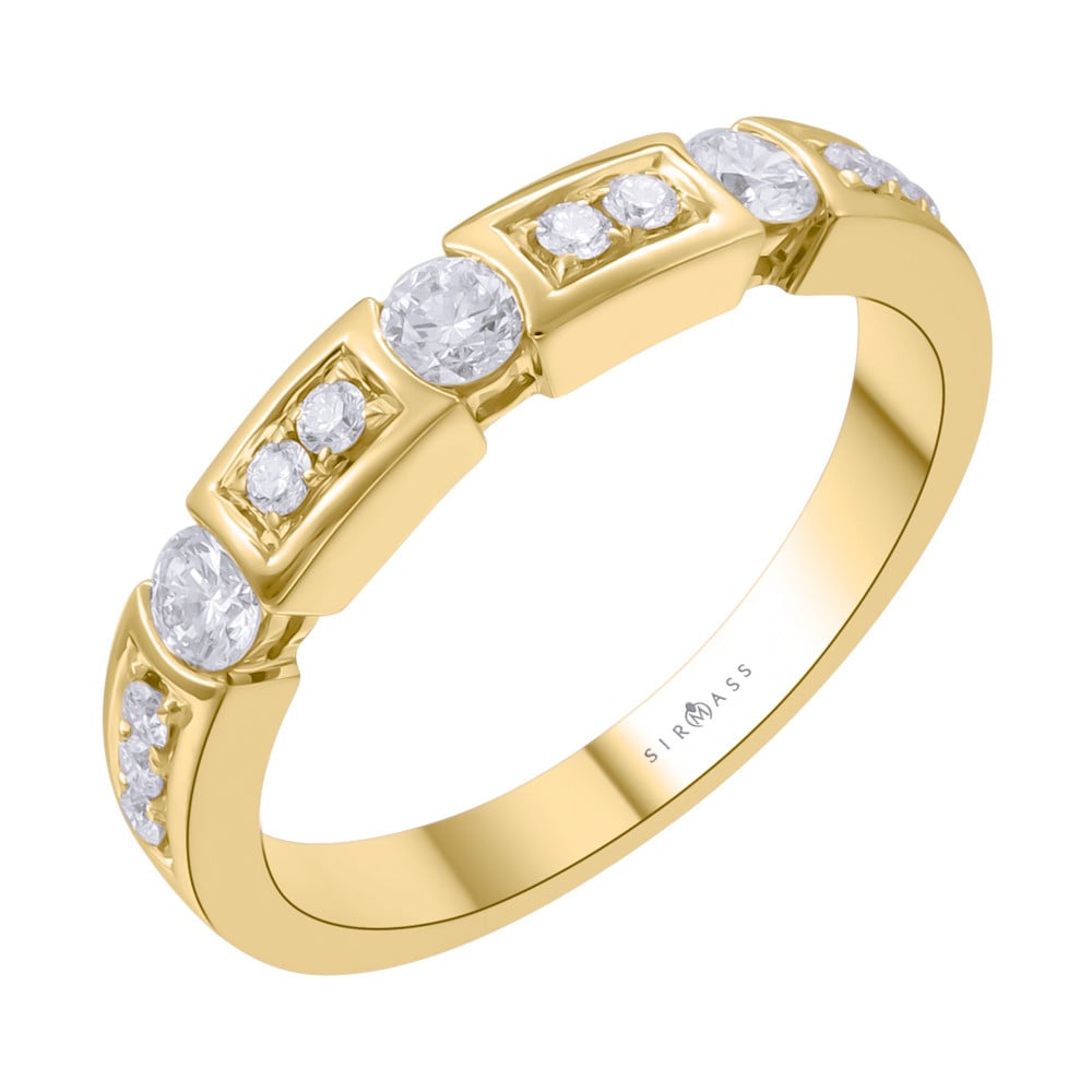 خاتم من الذهب الأصفر عيار 18 قيراطا مرصعة بالألماس وزن الذهب:4.2 جراما عدد الألماس:13 وزن الألماس:0.4 قيراط نقاء الألماس:VS-SI1 لون الألماس:H-I