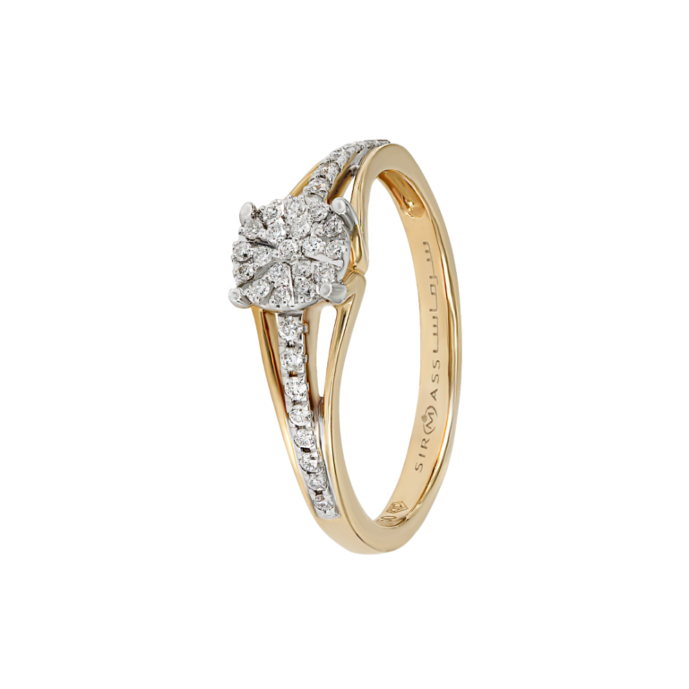خاتم من الذهب الأصفر عيار 18 قيراطاً مرصعة بالألماس