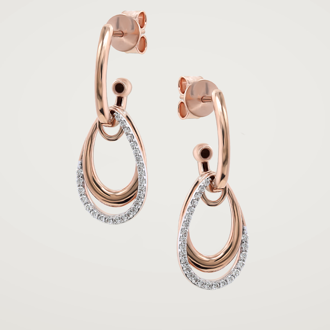حلق من الذهب الوردي عيار 18 قيراطاً مرصعة بالألماس